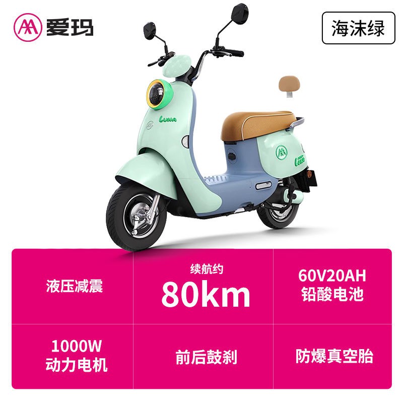 爱玛电动车露娜长续航大功率时尚豪华外卖电动摩托车