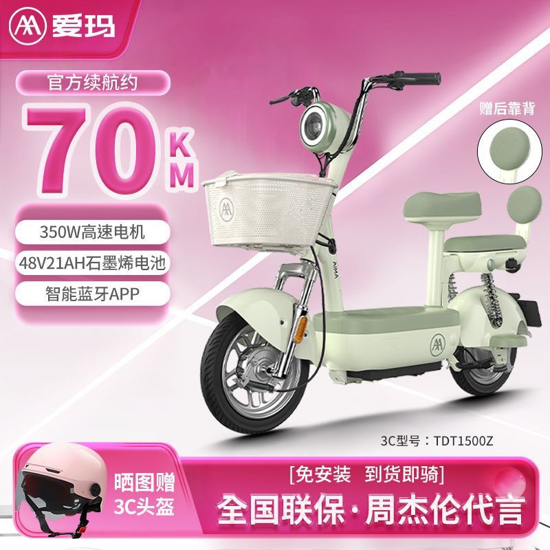 爱玛小金豆48V21电动自行车大电池长续航蓝牙智联成人代步车电动自行车